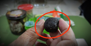 "Ukurannya seperti kelereng, warna hitam, dan teksturnya kasar," sambungnya.